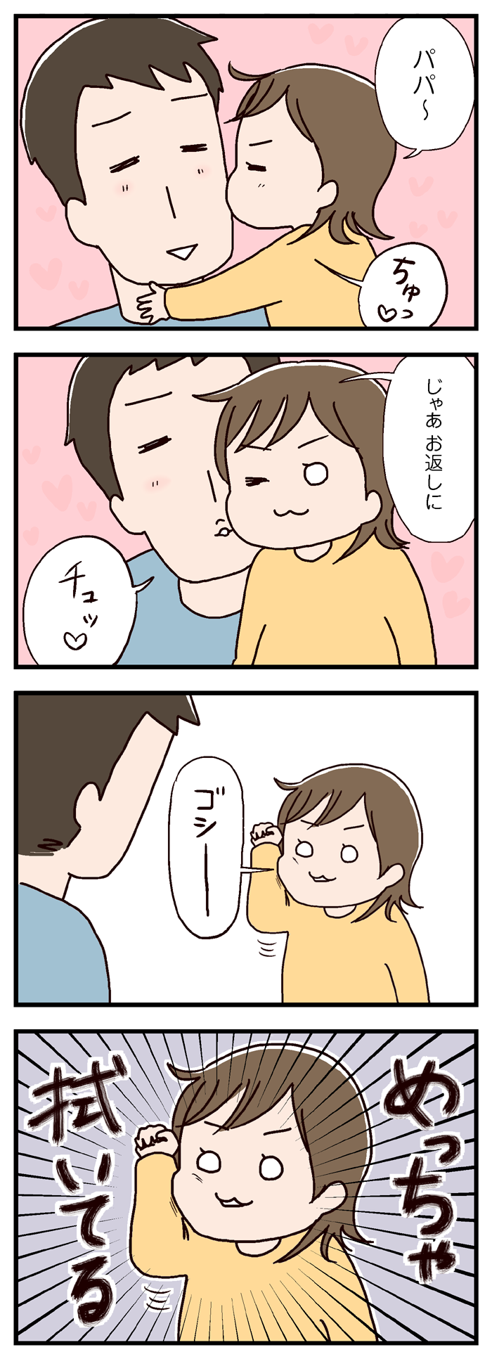 パパが娘にキスしたときの反応 2017年04月15日 どーも、あね子です。マイちゃんはパパが大好き♡自分がされるのは嫌。新ブログ立ち上げました!正直 余裕はありません。 いっぱいいっぱいだけど2人育児楽しんでます [単行本]あね子KADOKAWA2016-10-27☆コミックエッセイ劇場で連載中☆人気ブログランキングへにほんブログ村 「ブログ」カテゴリの最新記事 タグ :#ほっぺにキス#拭く < 前の記事次の記事 >