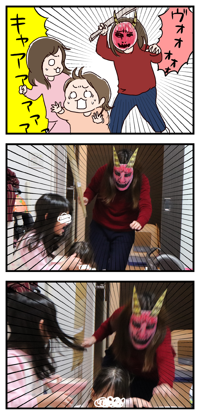 きのうの節分、メイ子に「今年はママが鬼やって」と言われ。