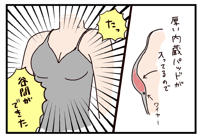 そんなお乳がうまいこと内蔵パッドに乗っかって、めっちゃ盛れる。しかも鏡見てビックリしたのが