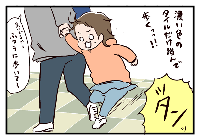 あとタイルの好きな色のとこだけ歩くとか!手繋いでると急にギュン!!!ってなるからやめてほしいですよね(^^;