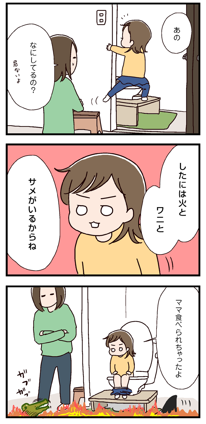 サメとワニと火があるから台の上を通らないとダメだそうです(笑)