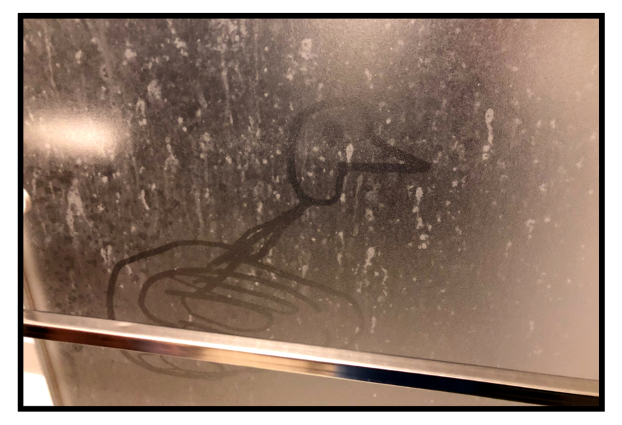 湯気で曇ったガラスに描いていた。