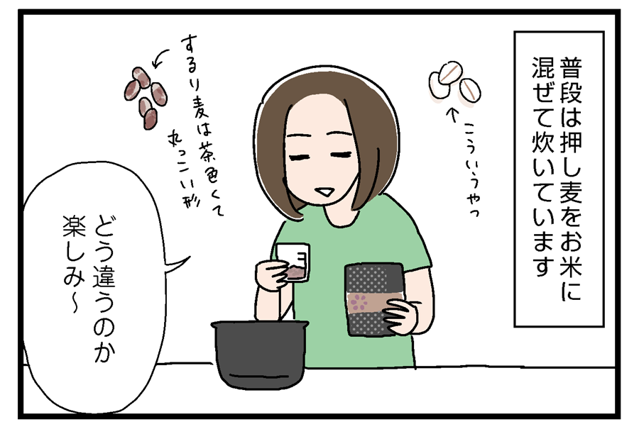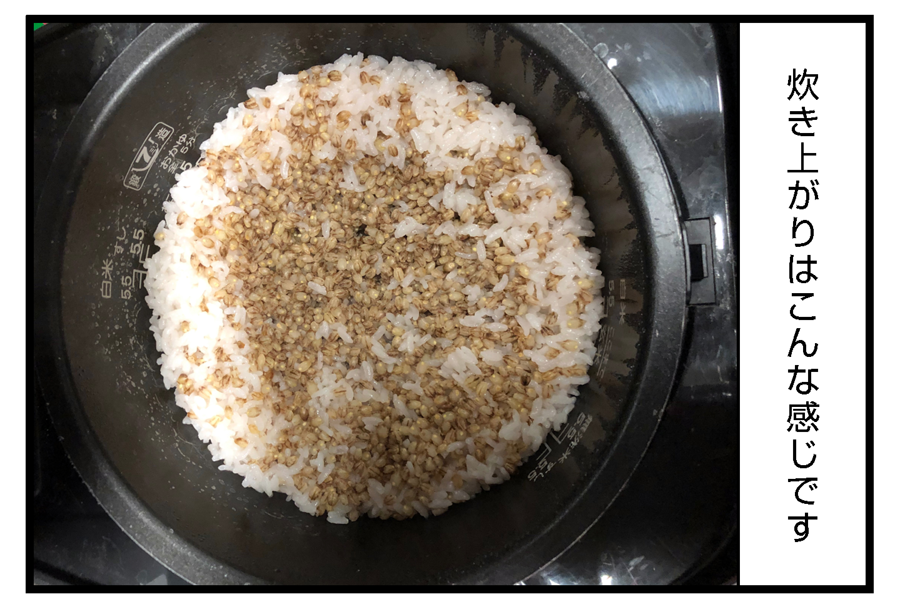 普段から押し麦を混ぜてごはんを炊いているので、それとどう違うのか!?わくわくしながら炊いてみました。