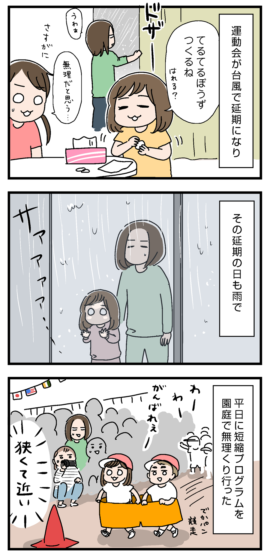今年の幼稚園の運動会。お天気に恵まれず、何度も延期になりました。