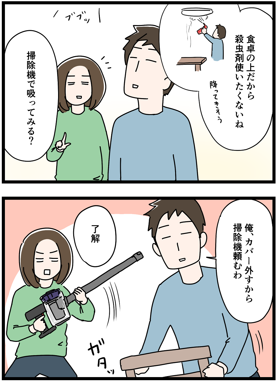 窓を開けても外に逃げず、ずっと照明あたりにいて出てきません。仕方がないので掃除機で吸うことにしました。