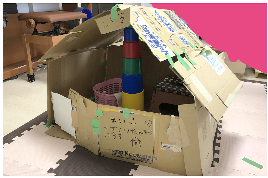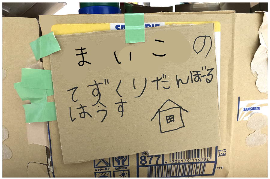 我が家の段ボールハウスは、壁に子供たちの芸術が施されて、捨てるに捨てられませんでした💦