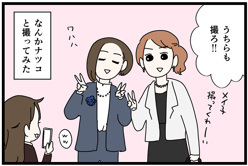 そして私も高校の同級生と写真、撮りました。子供同士が同じクラスで仲良くなったので。子供たちは春休み中も一緒に宿題をやったり遊んだりしています。